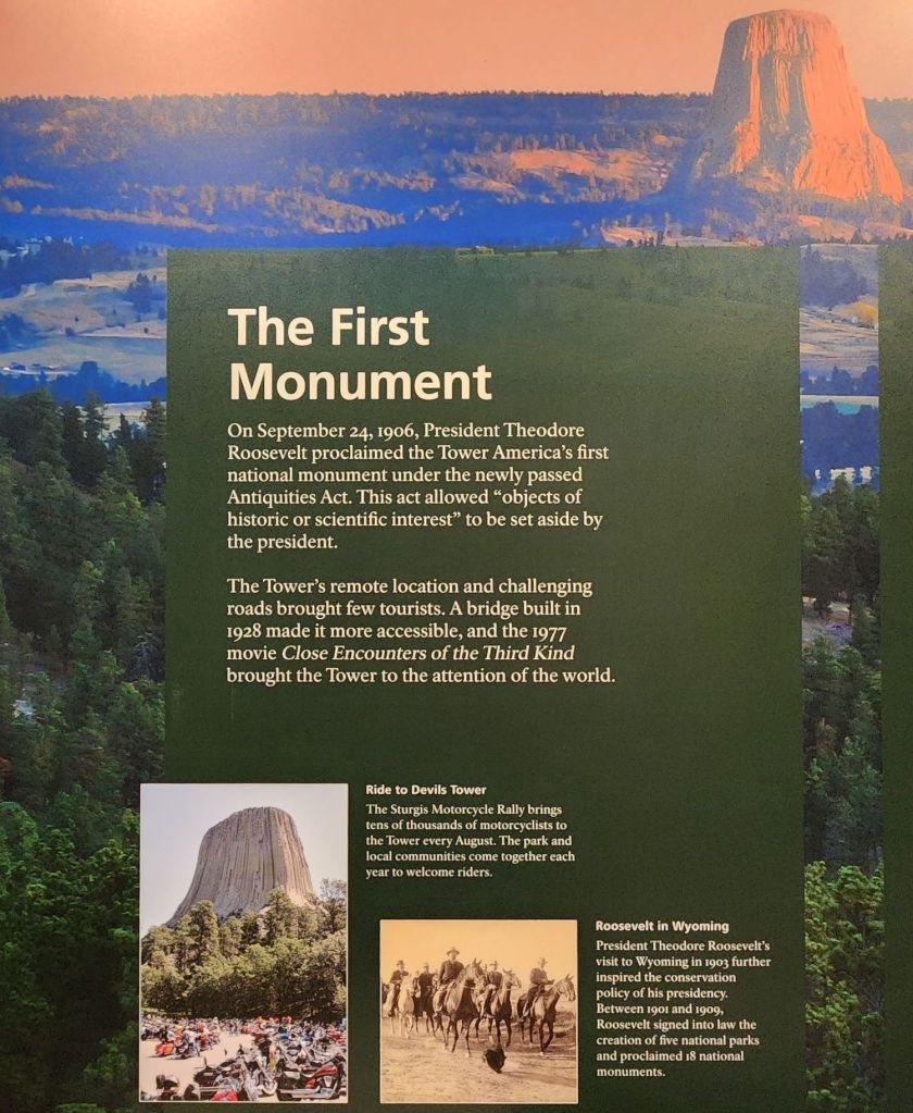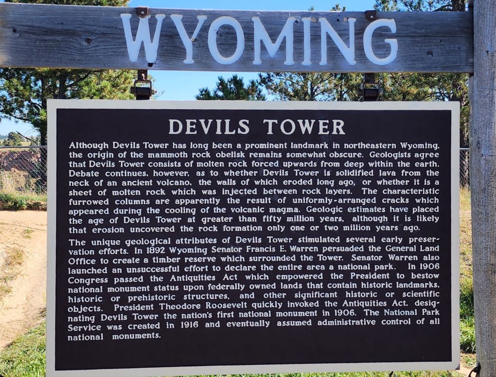 Today is going to be a jammed-packed day. We’re going to visit Devils Tower in the Northeast corner of Wyoming, then head into South Dakota to visit the Center of the Nation at Belle Fourche, Crazy Horse, and Mt Rushmore! Let’s go!