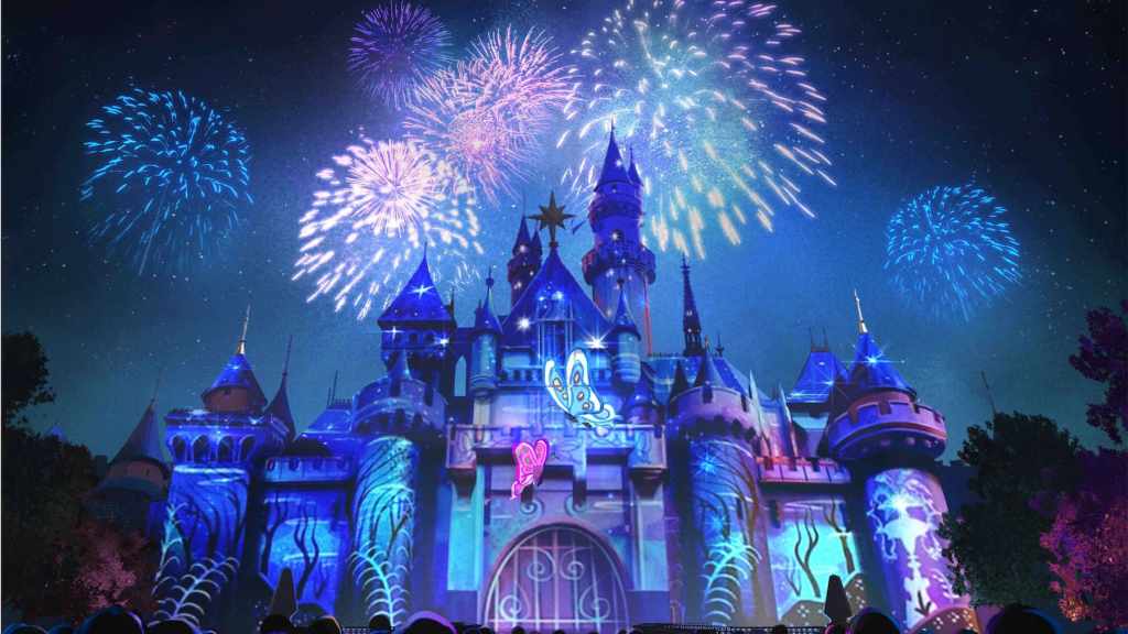 Gaze upon “Fantasy in the Sky,” a nighttime spectacular giving a nod to the same-named fireworks display that first illuminated the night in Disneyland park in 1957!