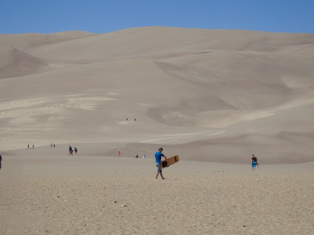 Note: your average backyard snow sled will not work well because it’s not slippery enough or you would have to constantly wax it. You need an actual sled/board made for sand sledding or sand boarding. I think they’re about $20 to rent for the day still.