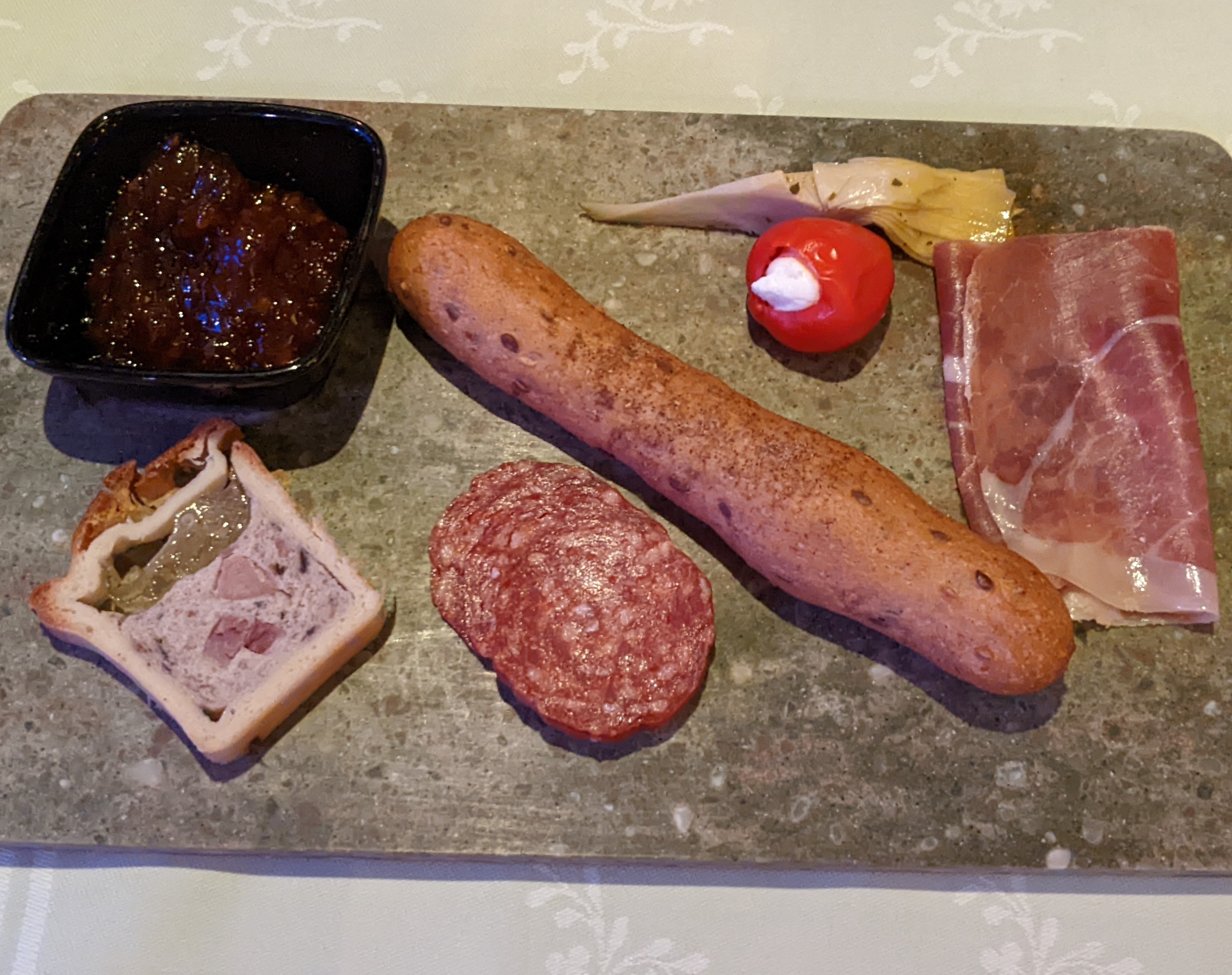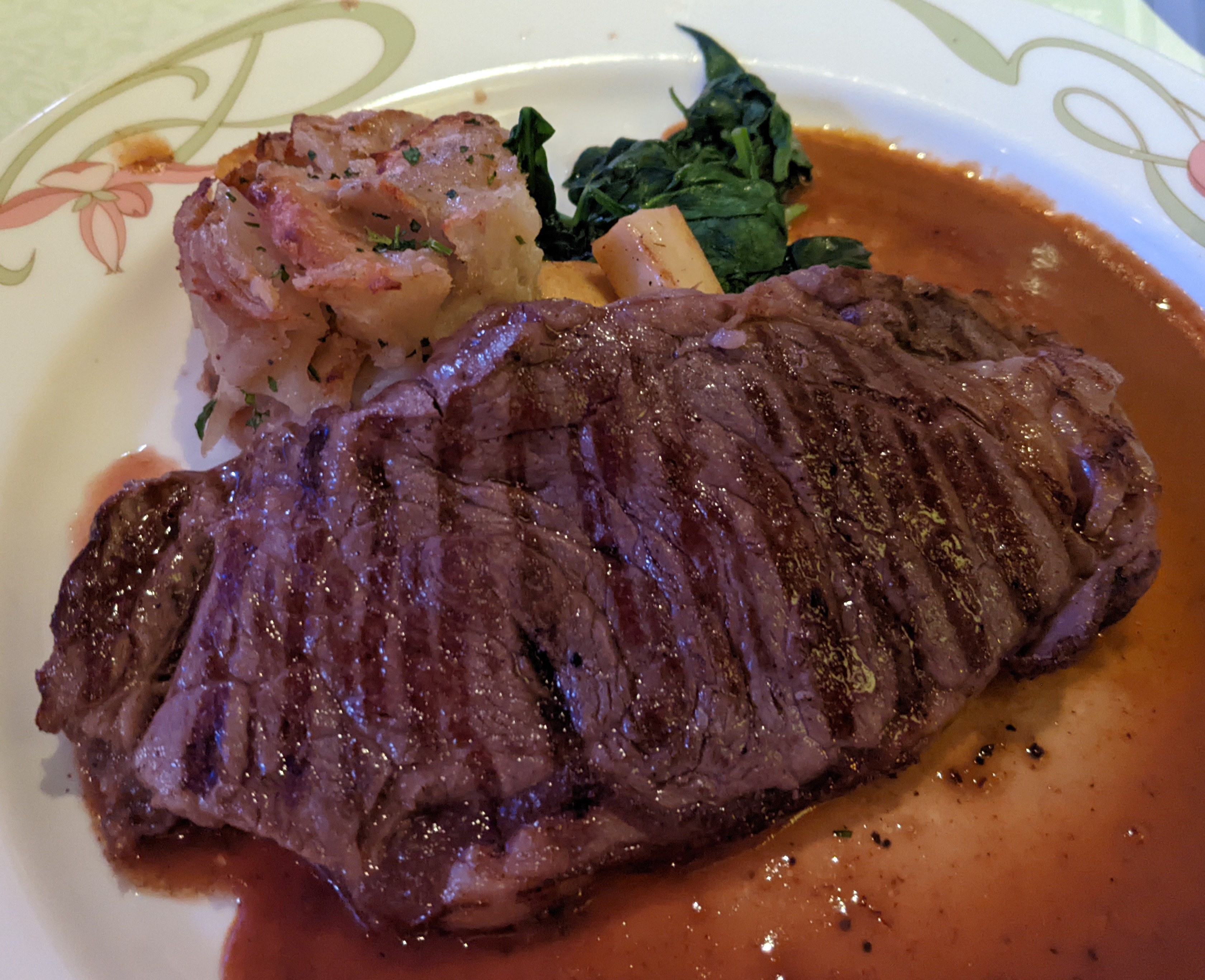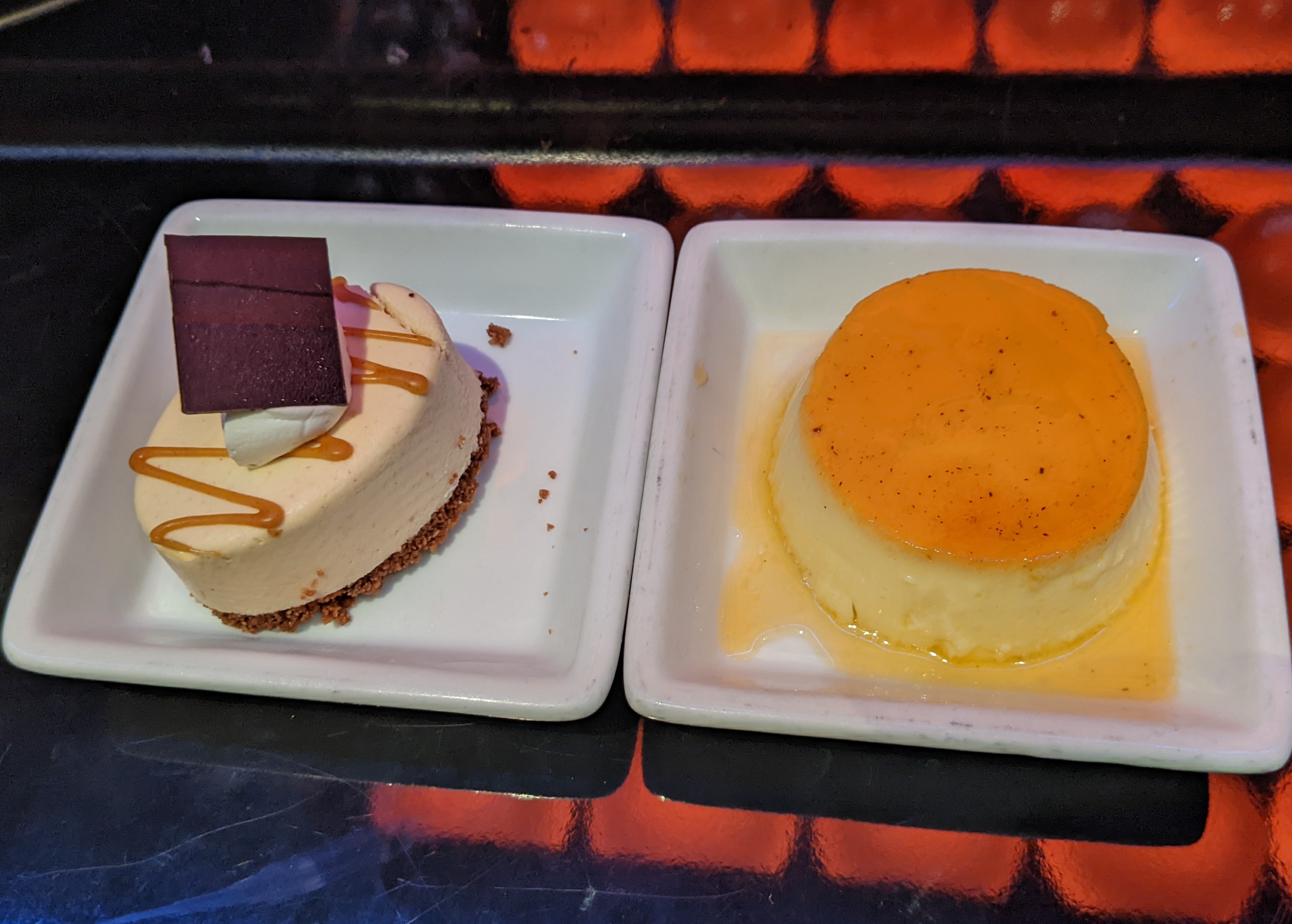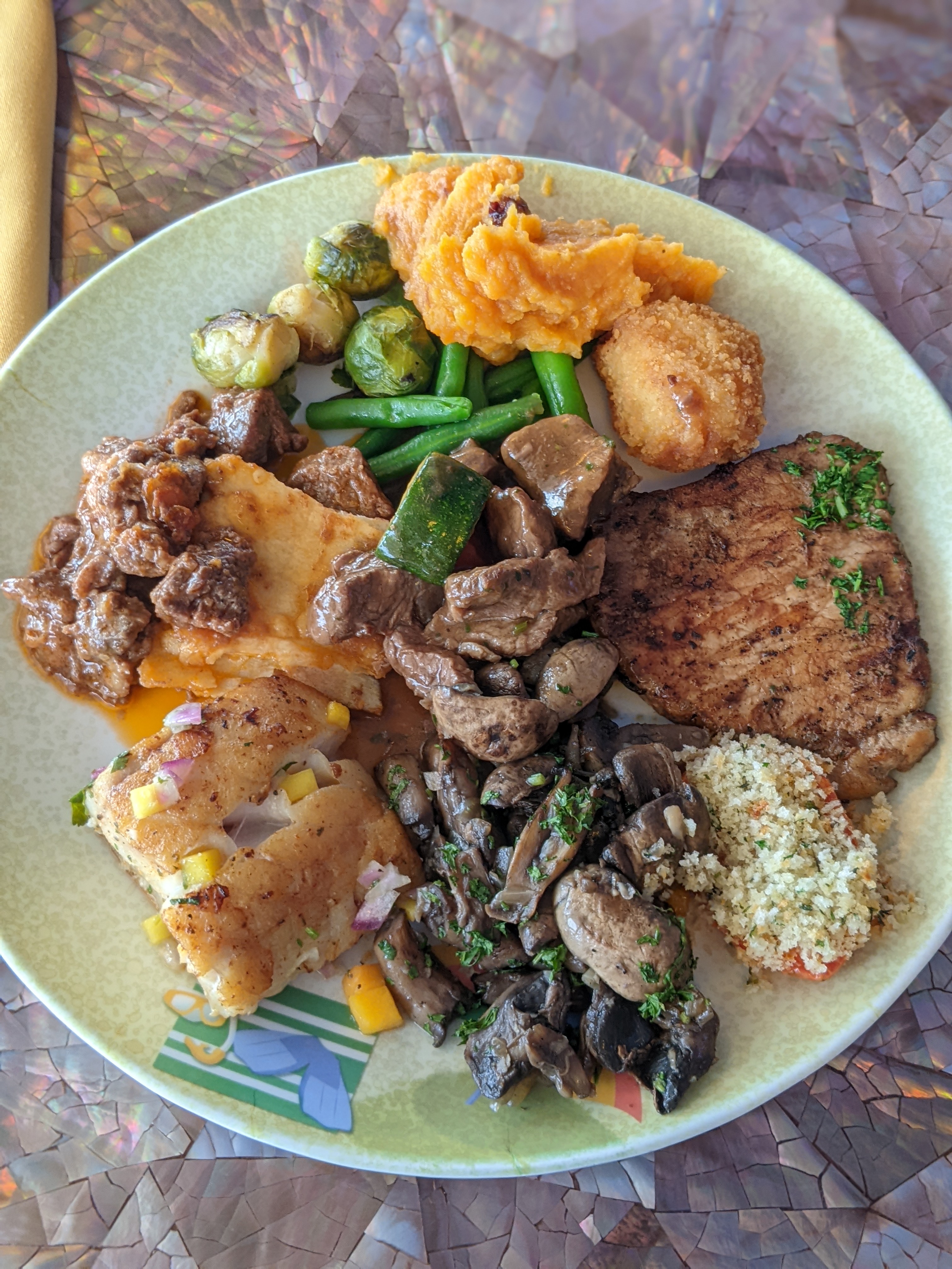 I told you we did alot today! Finally, it was time for dinner. Tonight, we were back in Enchanted Garden. I don’t know if we were just extra hungry since we did so much today and didn’t snack as much during the afternoon, but everything was extra good that night. And again, our servers insisted that we try every dessert. LOL