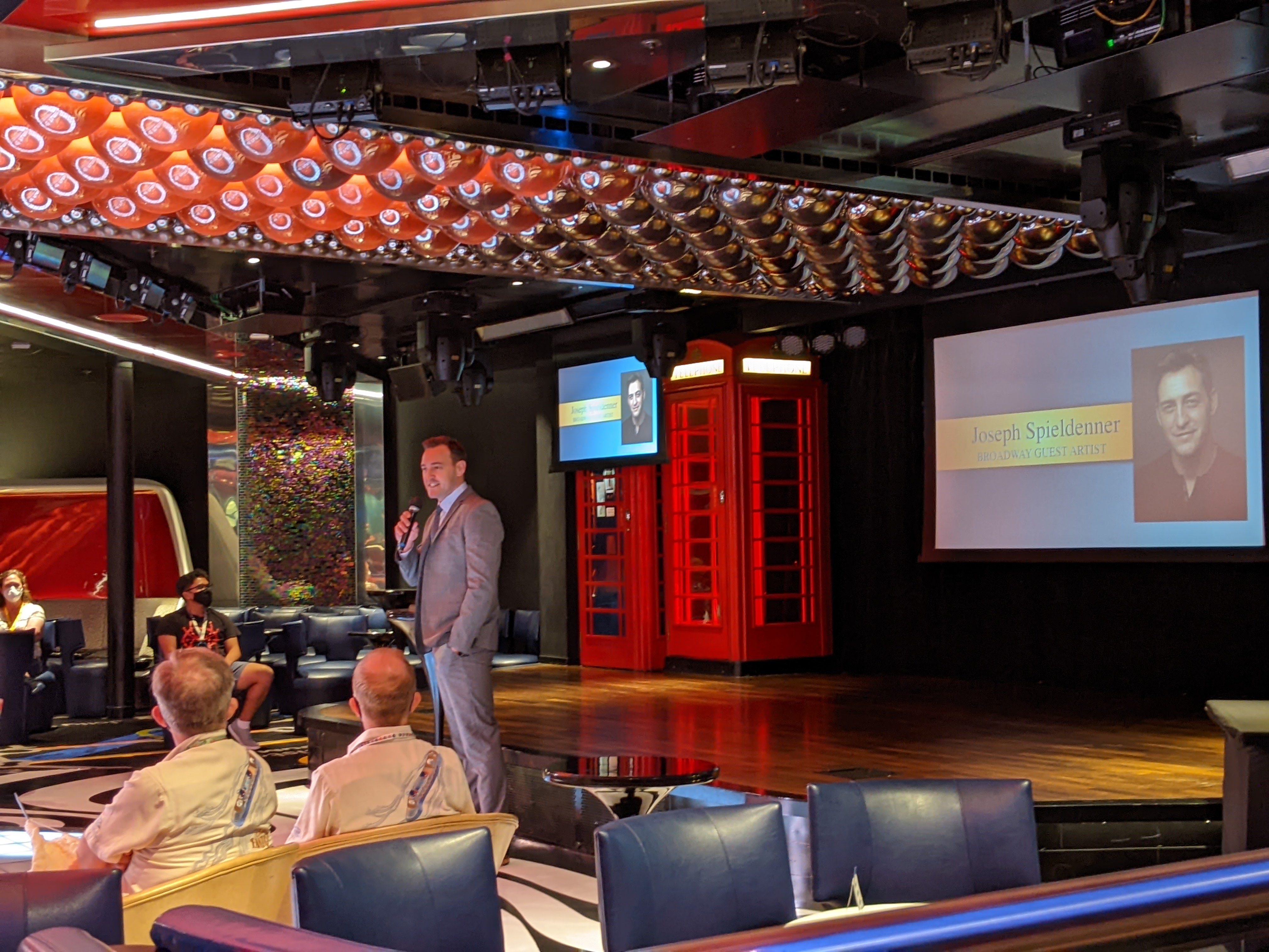 Our guest artist was Joe Spieldenner, who talked about his life growing up in a small town in Maine and his journey to Broadway and beyond. He led a very fascinating life doing all sorts of things and gave many great insights and advice to aspiring actors, or really, anyone trying to chase a dream goal. Of course, he also showed many pics of his Les Mis stint and sang a small snippet from the show. He played several roles, but most notably Javert and Thenardier. He was a very charismatic speaker and this was definitely a huge highlight of the cruise. We laughed, we cried. I just wish they had a recording of his whole presentation for everyone to see. It was awesome!