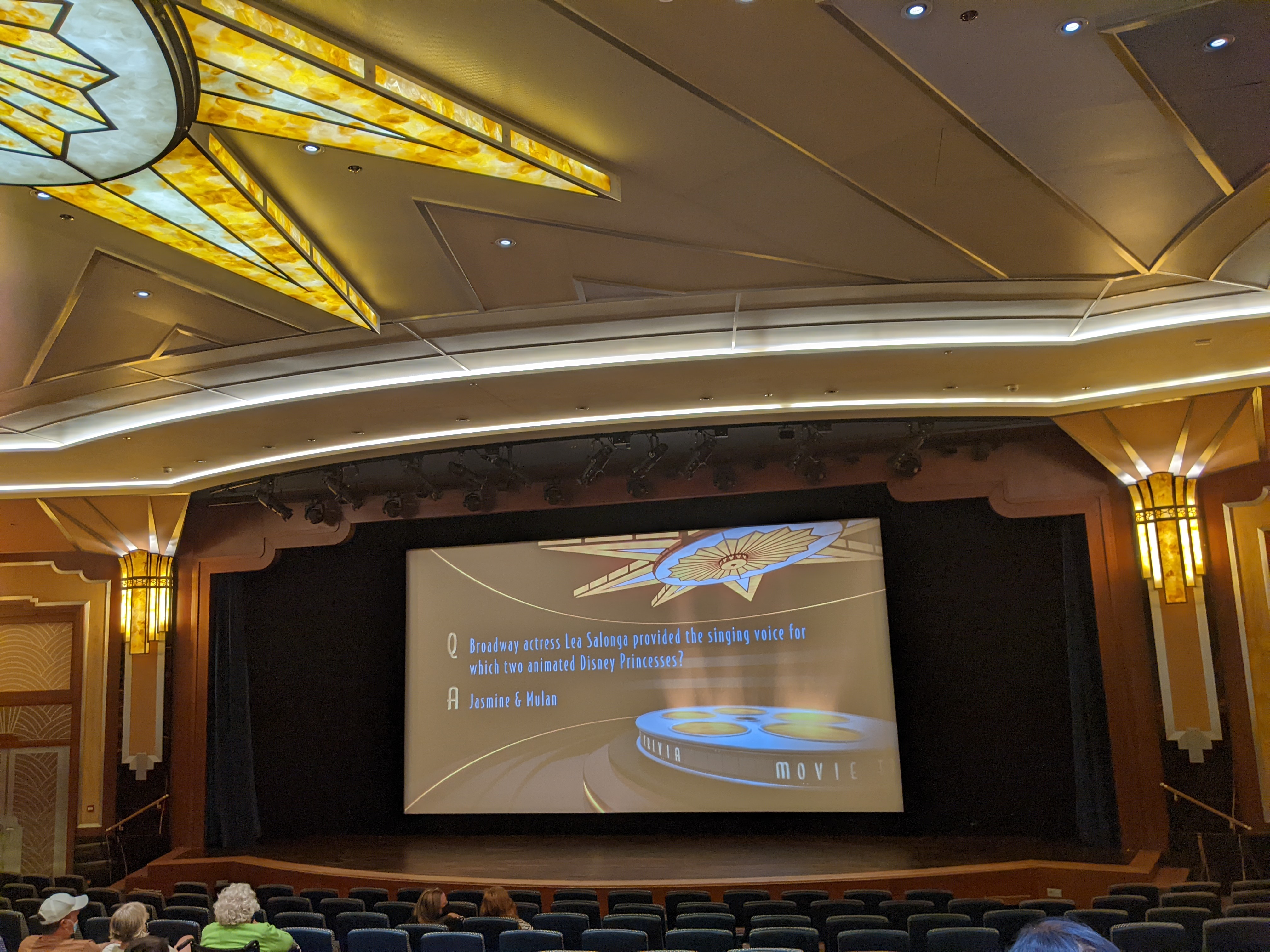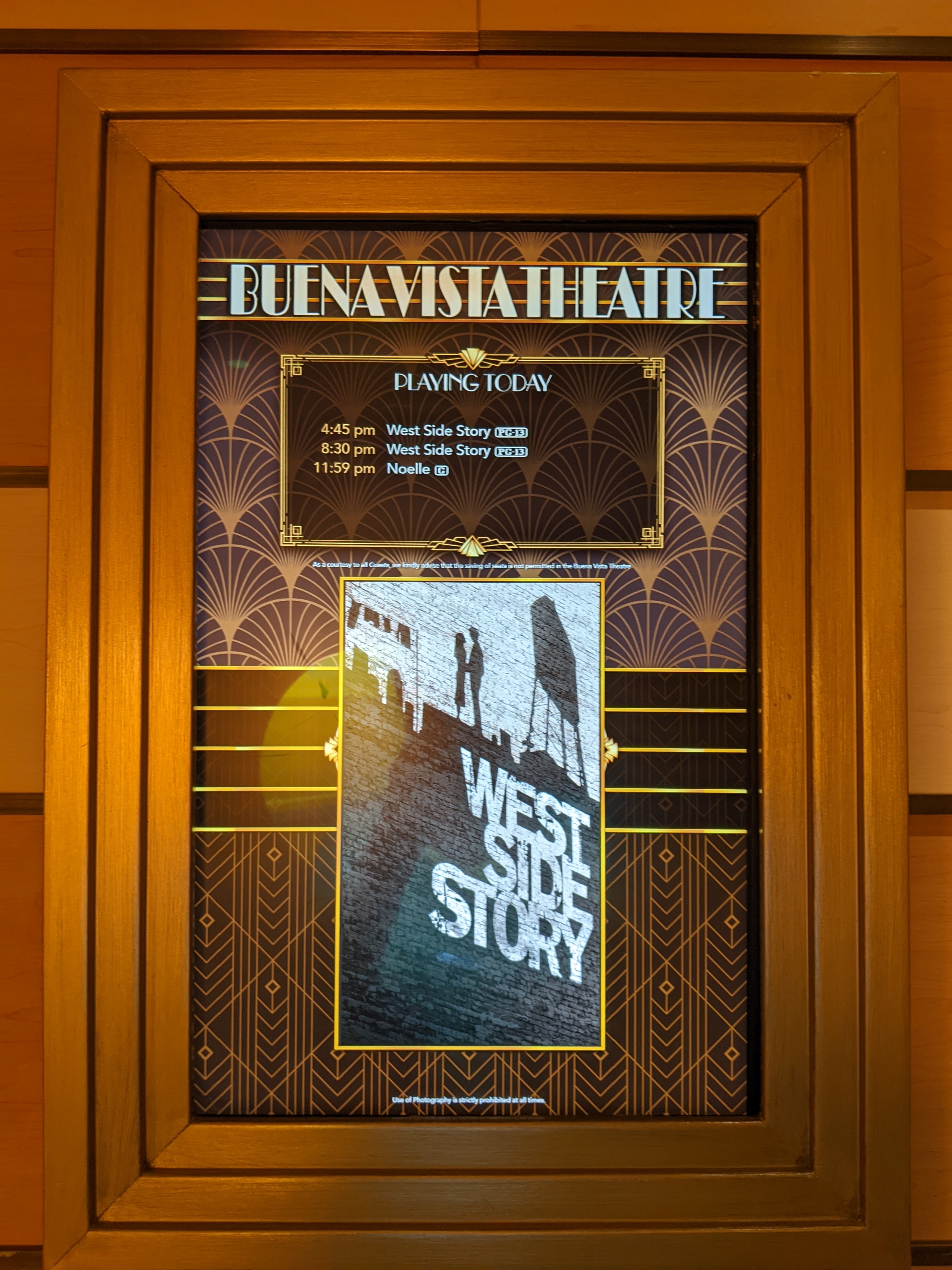 During all Disney cruises, they would play current Disney movies that may even still be in movie theaters, and if a movie happened to be premiering in theaters during your sailing, they will also premier on the ship that same night! During this sailing, we were able to watch Encanto and West Side Story, both of which were great! Obviously, I couldn’t take pics of the movies, but here are pics of the theater, which was beautiful!