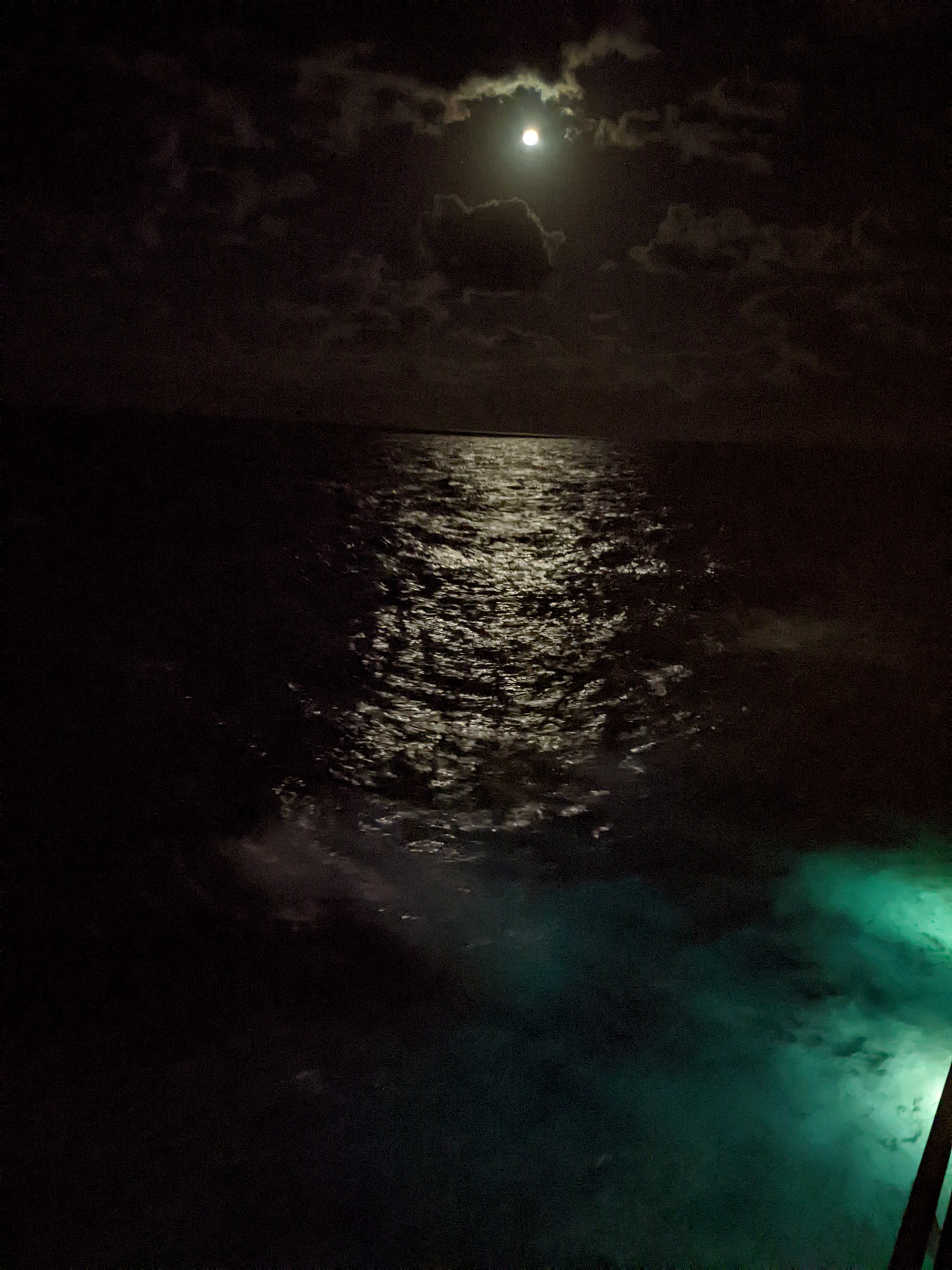 After all that food, we had to do a few laps around the walking track on deck 4. The moon was still bright and beautiful, and a little spooky.