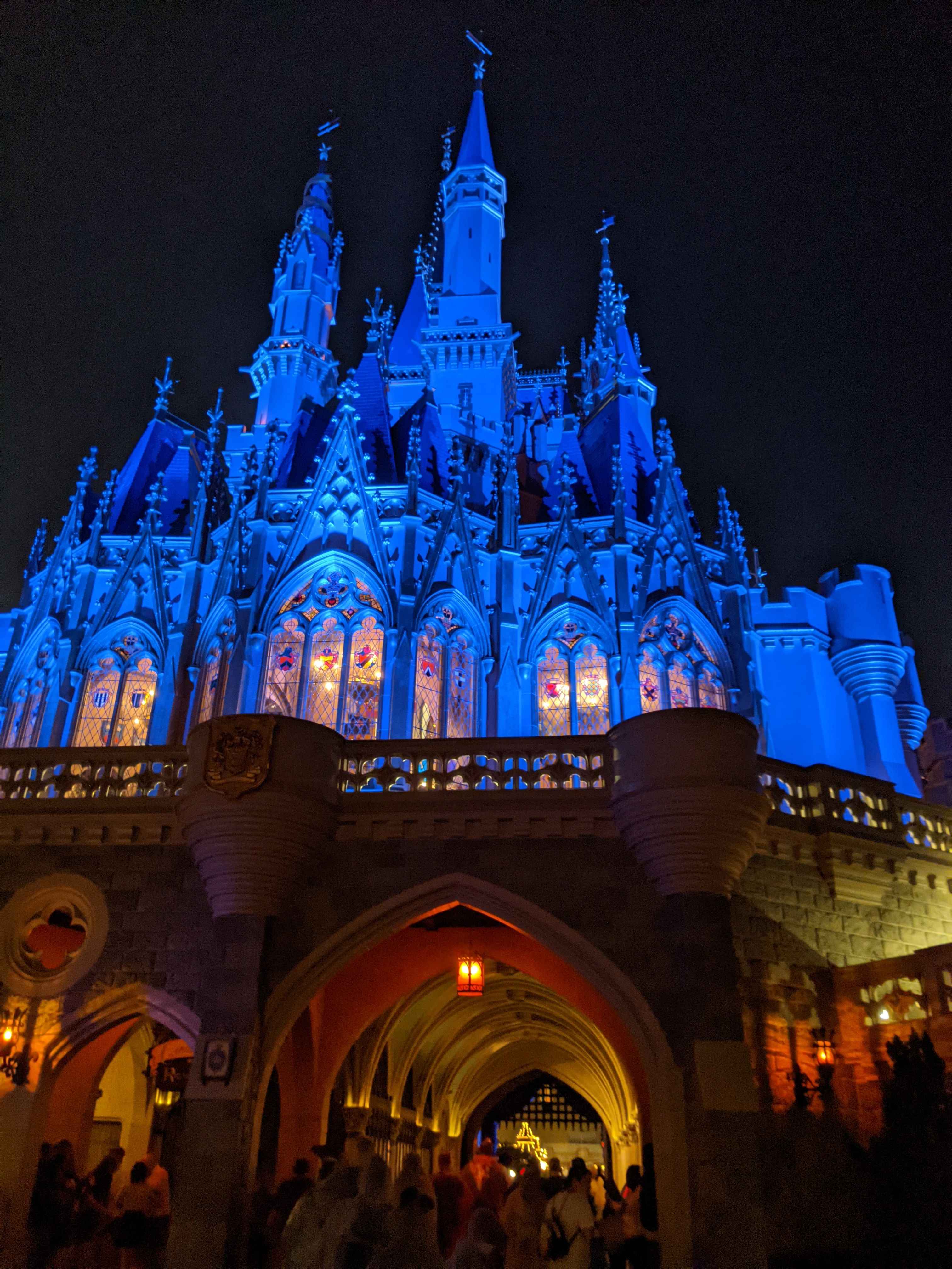 Afterwards, we walked around the castle some more, but it was getting near closing time since the parks still have reduced hours. We saw that the Peter Pan ride had a 10 minute wait, which is unheard of, so we bee-lined it there. We probably haven’t ridden it since our first trip since it usually has an hour wait at least, and we didn’t want to use a FastPass for that. We usually use them on the big mountain coasters. It’s a cute ride though.