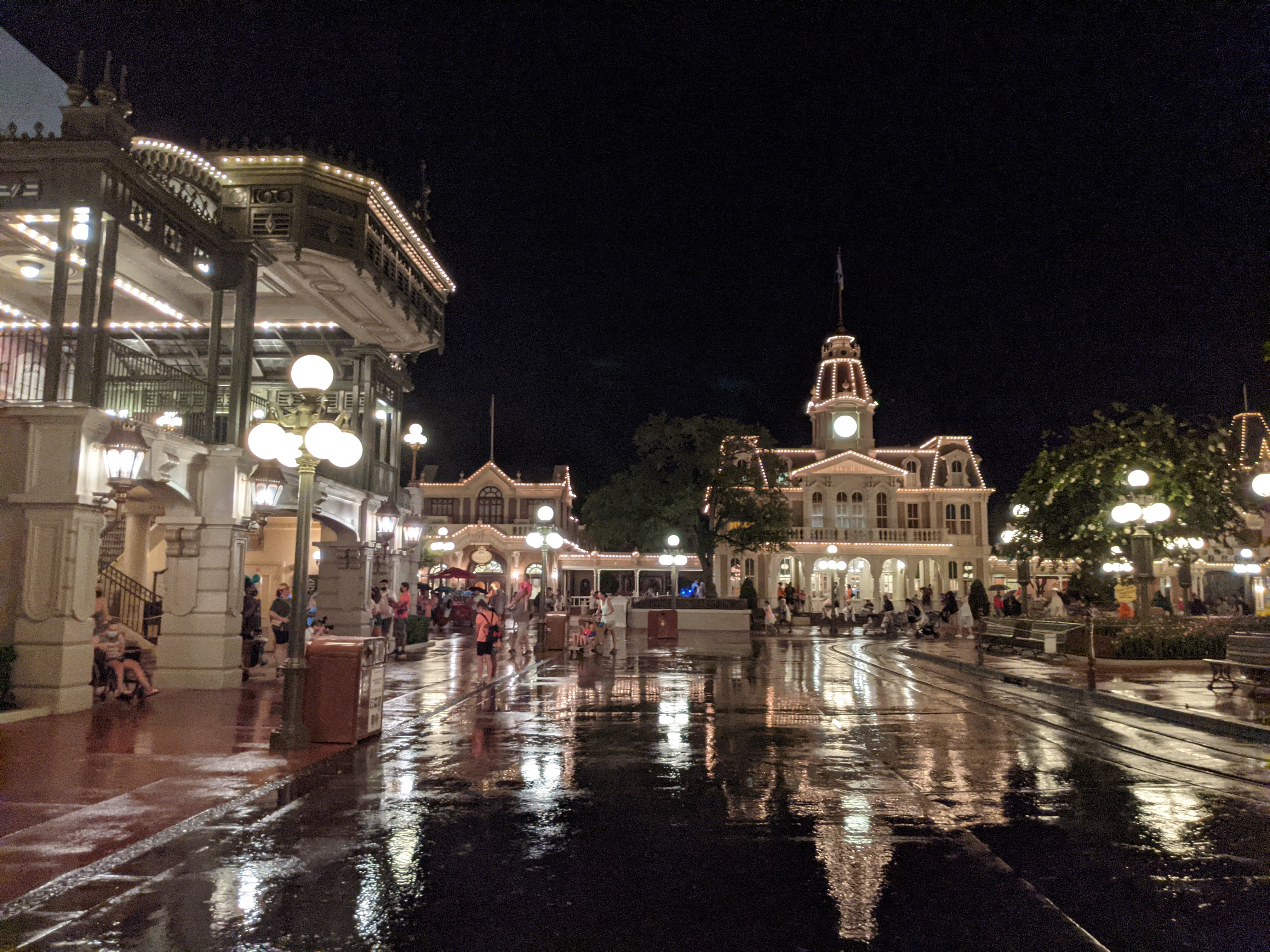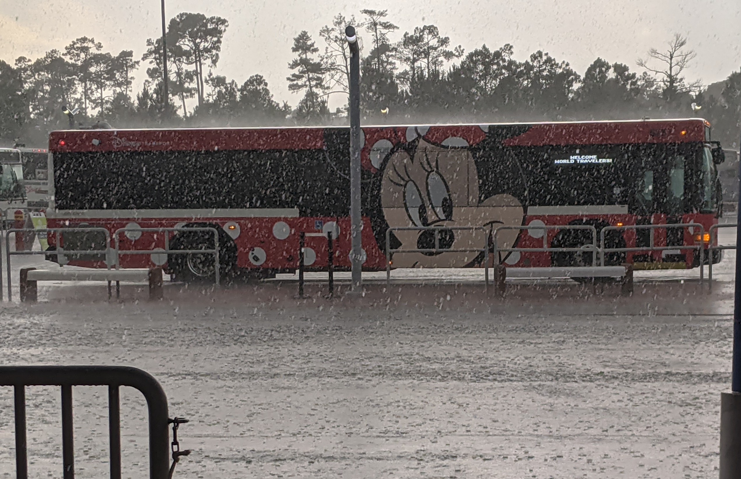 We got on the Magic Kingdom bus in front of Epcot to head over there. Another brief storm blew in while we were waiting for the bus, but luckily we were under the covers of the bus stop so it wasn’t a big deal, and it stopped by the time we got to Magic Kingdom. Lucky!