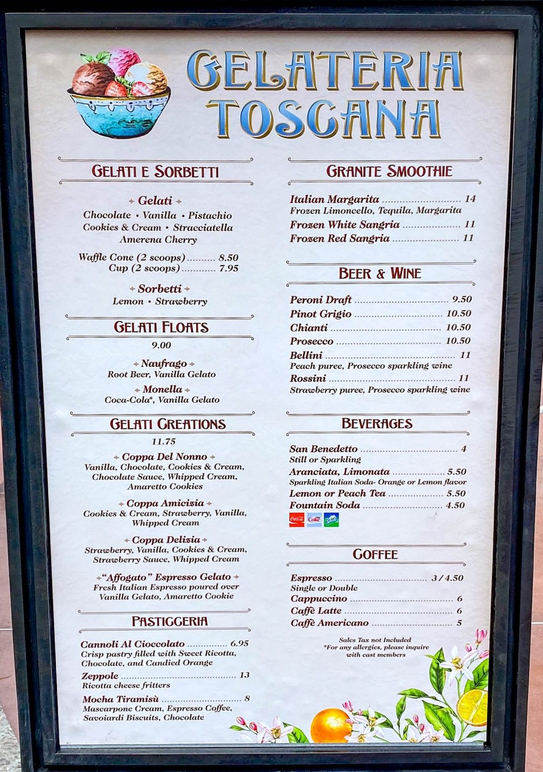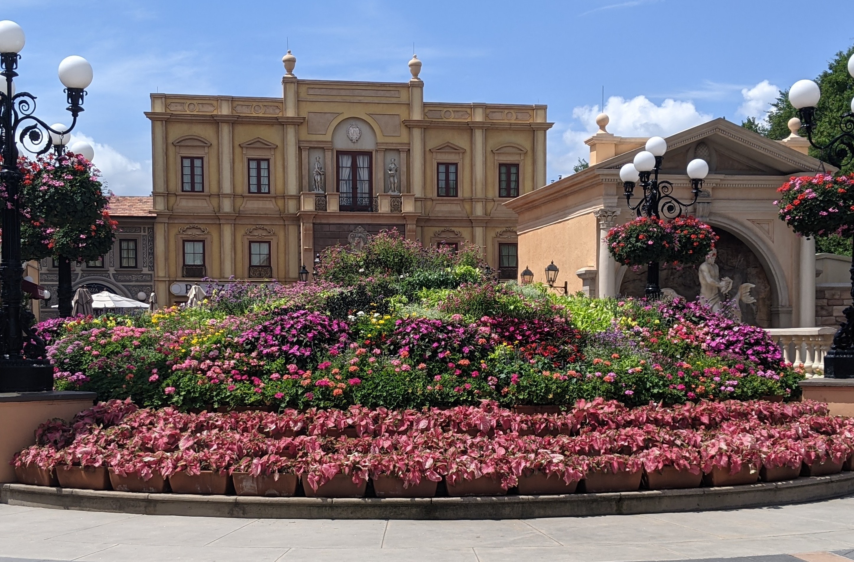 It was almost time for our first early lunch reservation at Via Napoli in Italy, So we started on our leisurely stroll in that direction. The Flower and Garden Festival is currently going on, so there are many food booths in front of each country as well, and we definitely want to try a bunch of those, so we took note of some menu items as we walked by. However, we had to resist for now since we knew Via Napoli was coming up and that’s one of our favorites.