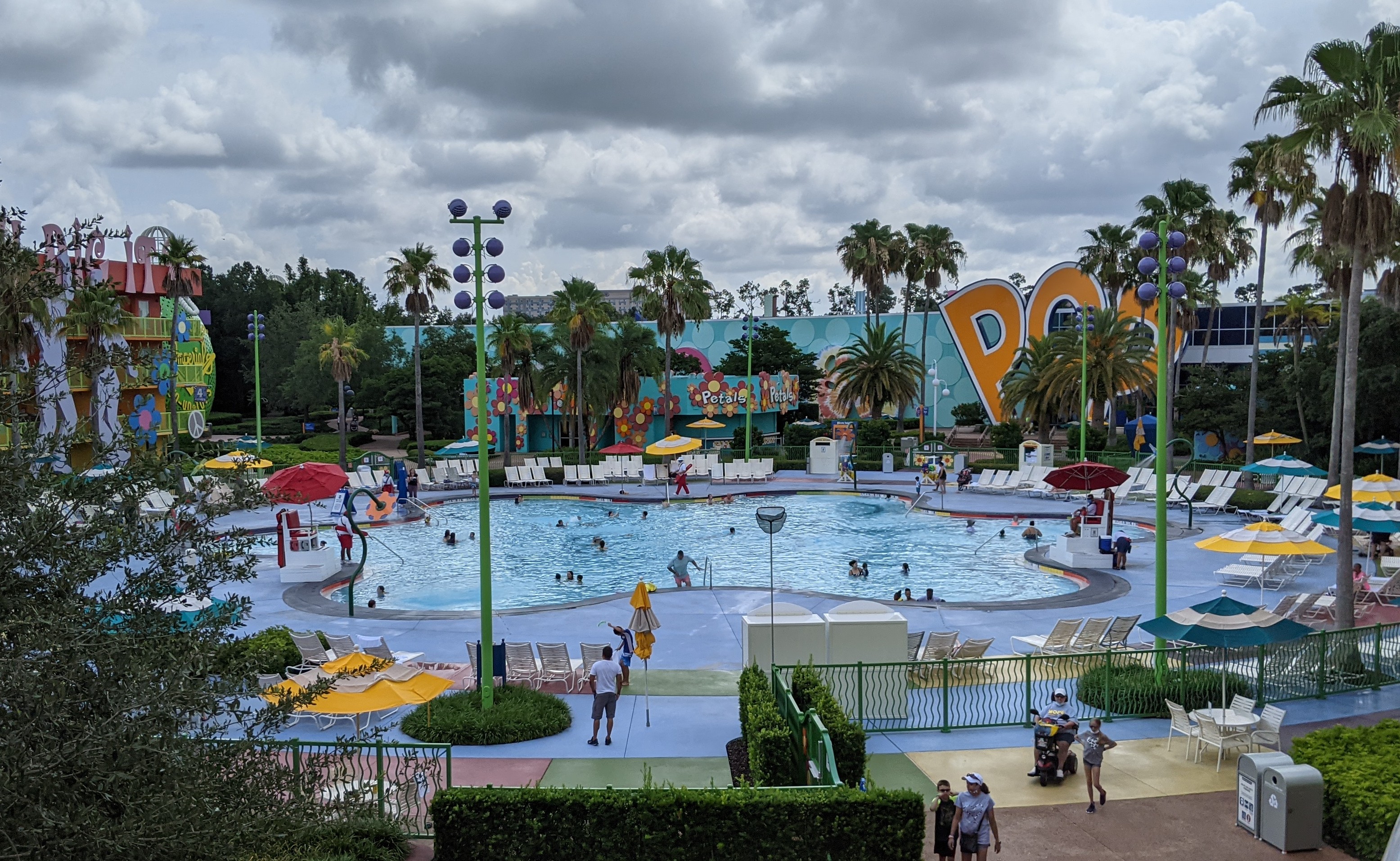 Right now, they’re doing mobile ordering there as well, so it was pretty handy to have everyone decide what they wanted while they were still getting ready and place our mobile order from our room, then hit the “I’m Here” button as we were leaving so that the food was ready to be picked up by the time we got there. Luckily our room was pretty central this time, right by the main pool and the main building where the food court is, so it was a quick walk over there. The food there is pretty good, we like it.