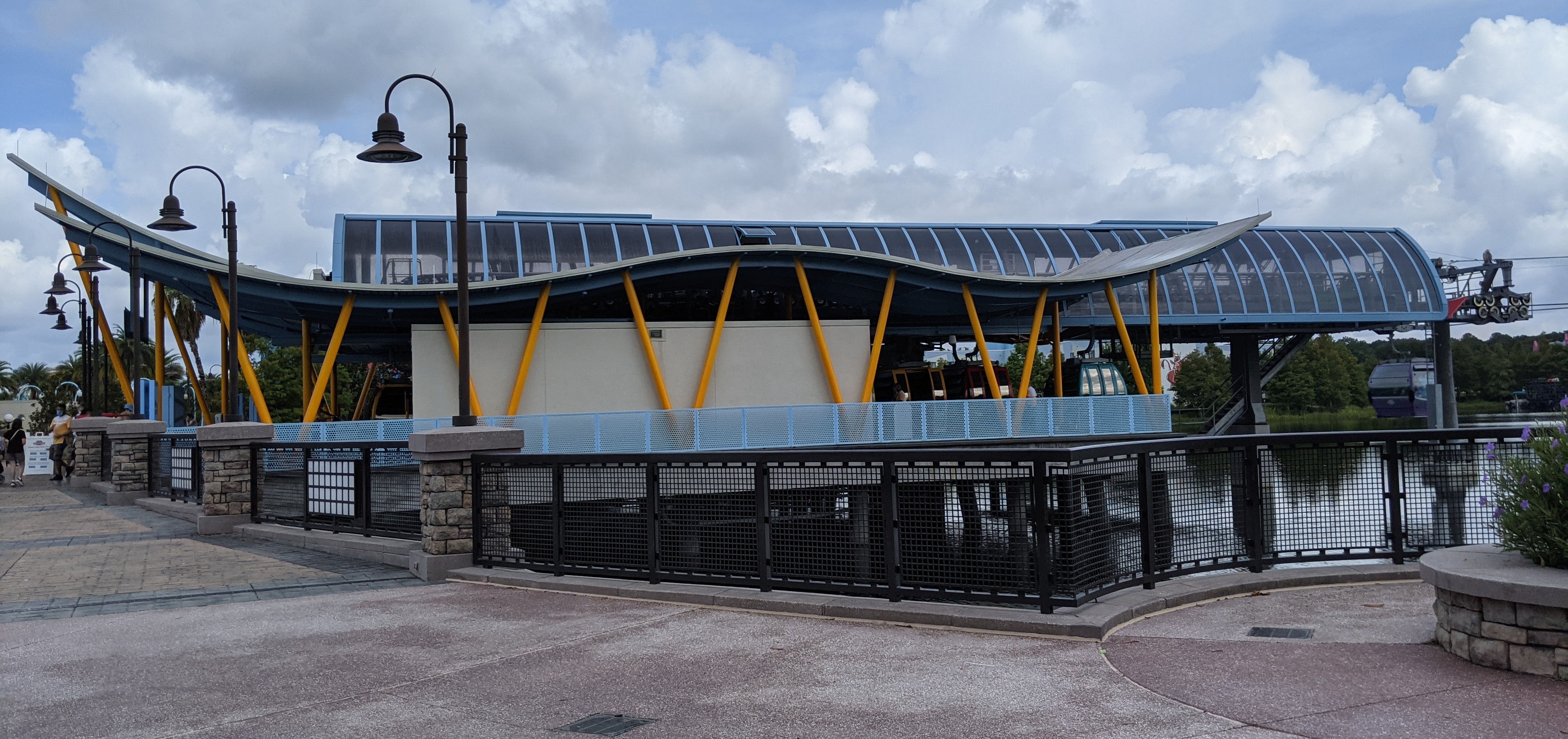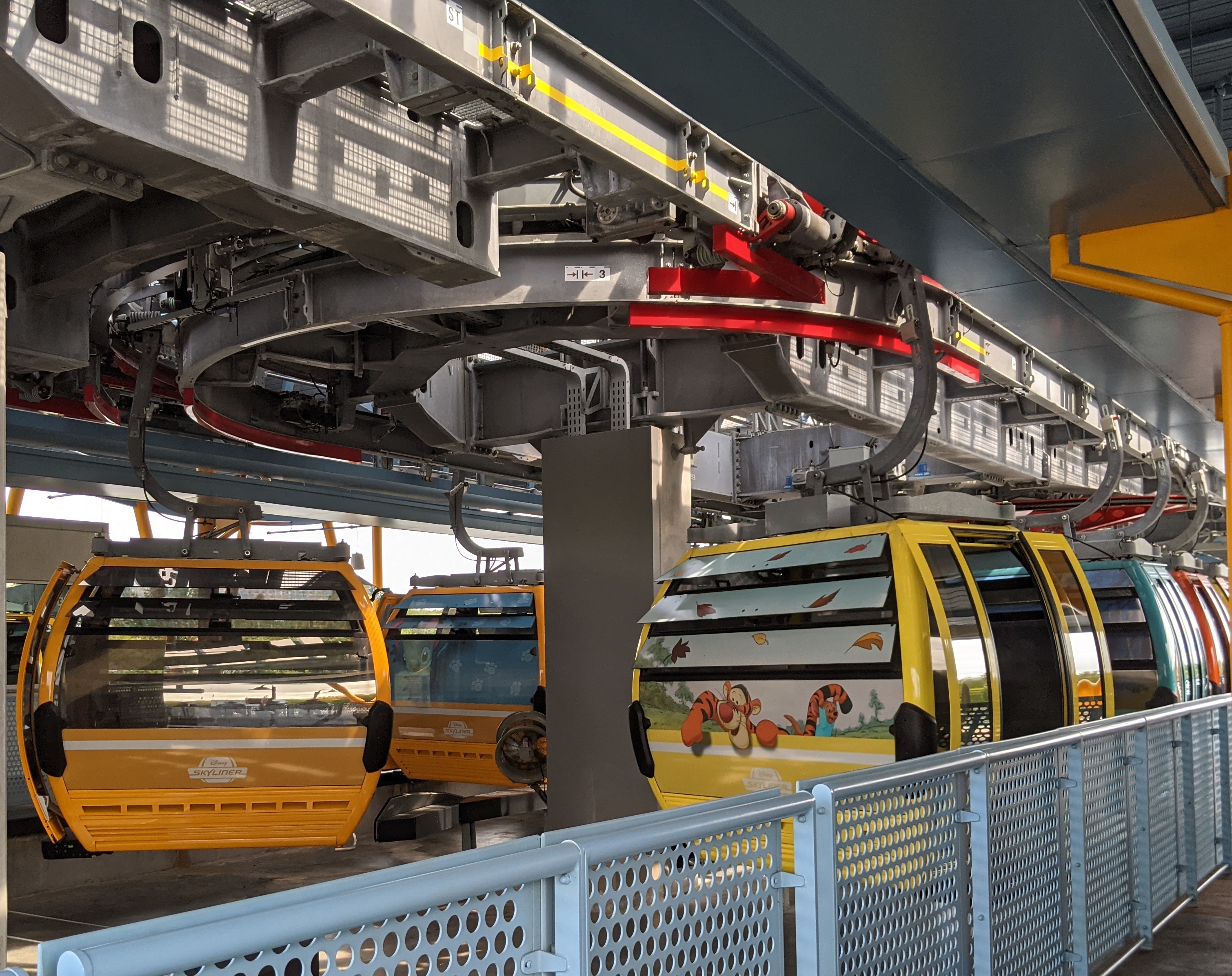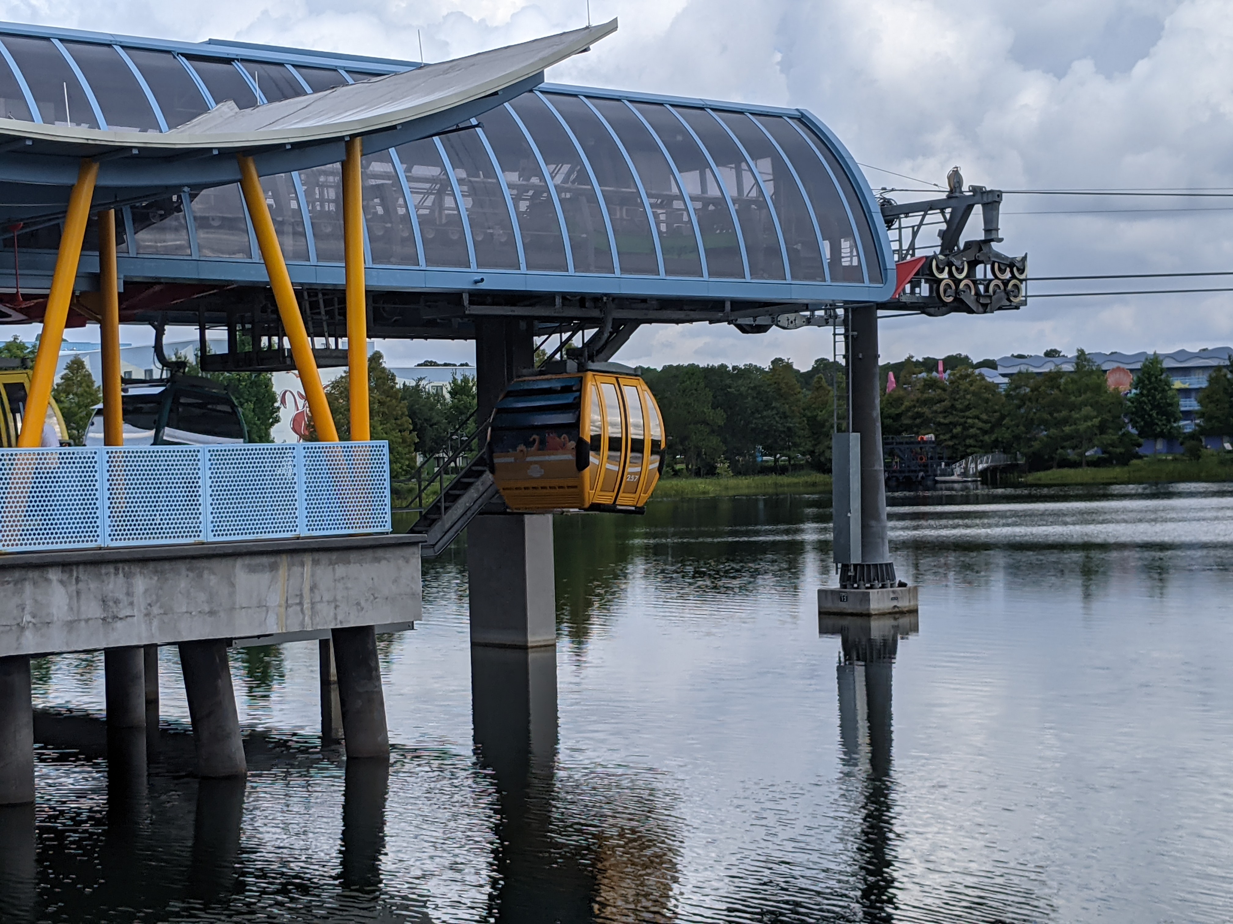 After breakfast, we were excited to take the Skyliner, which is accessible at the back of the resort behind the main pool area. We specifically requested a room near the Skyliner stop this trip since we knew we wanted to take it fairly often.