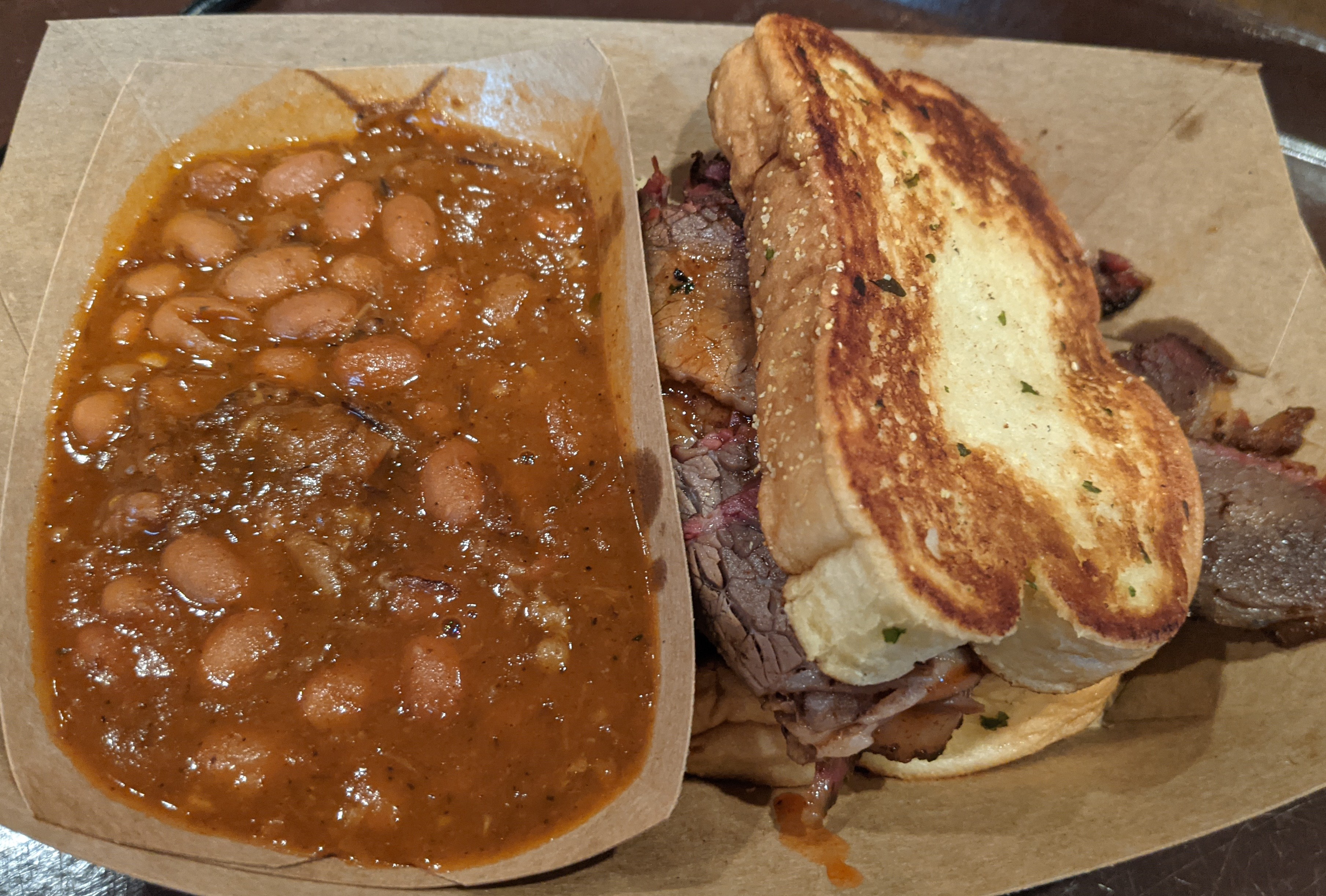 This didn’t look to be one of those 10 minute afternoon storms, so we decided to place a mobile order for the new Regal Eagle BBQ restaurant at the American pavilion just so we could get inside to sit down a while. We were standing right next to the door for it, but, because of social distancing right now, they are not letting people just go into the quick service restaurants without a mobile order.