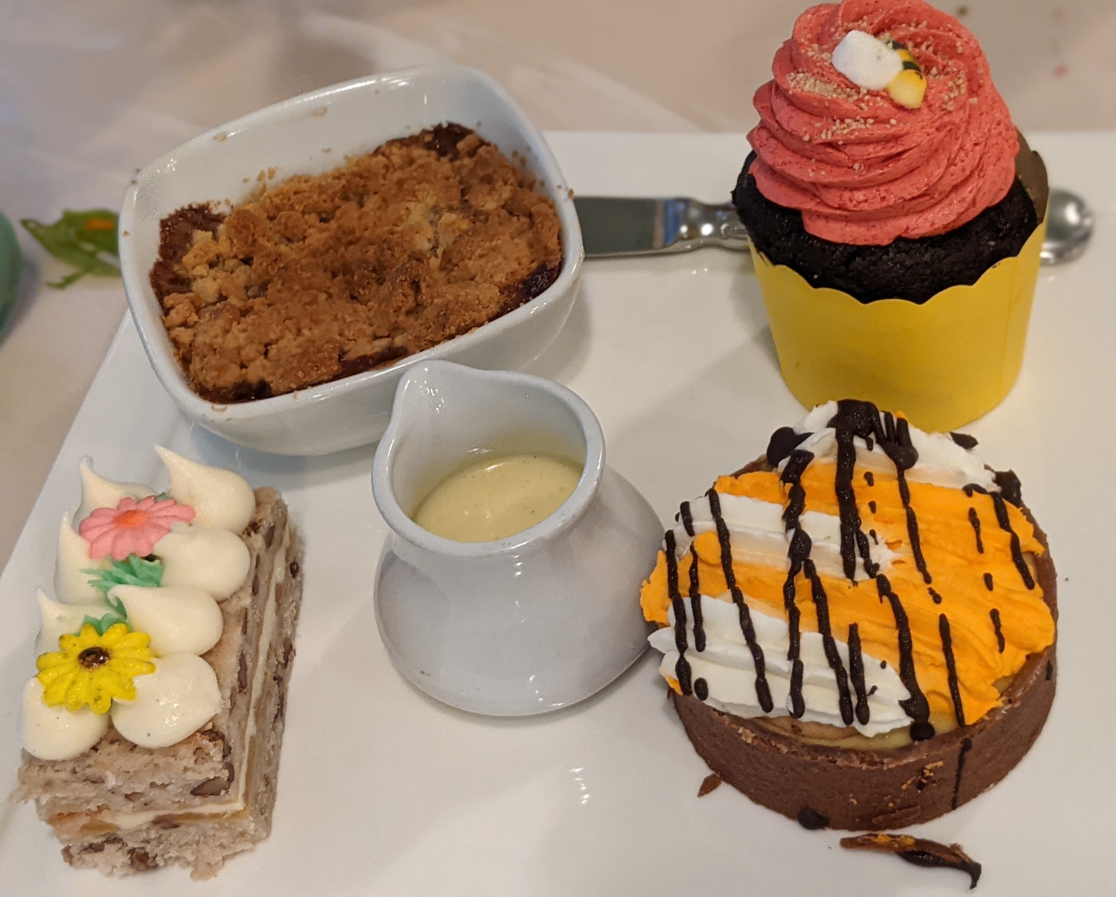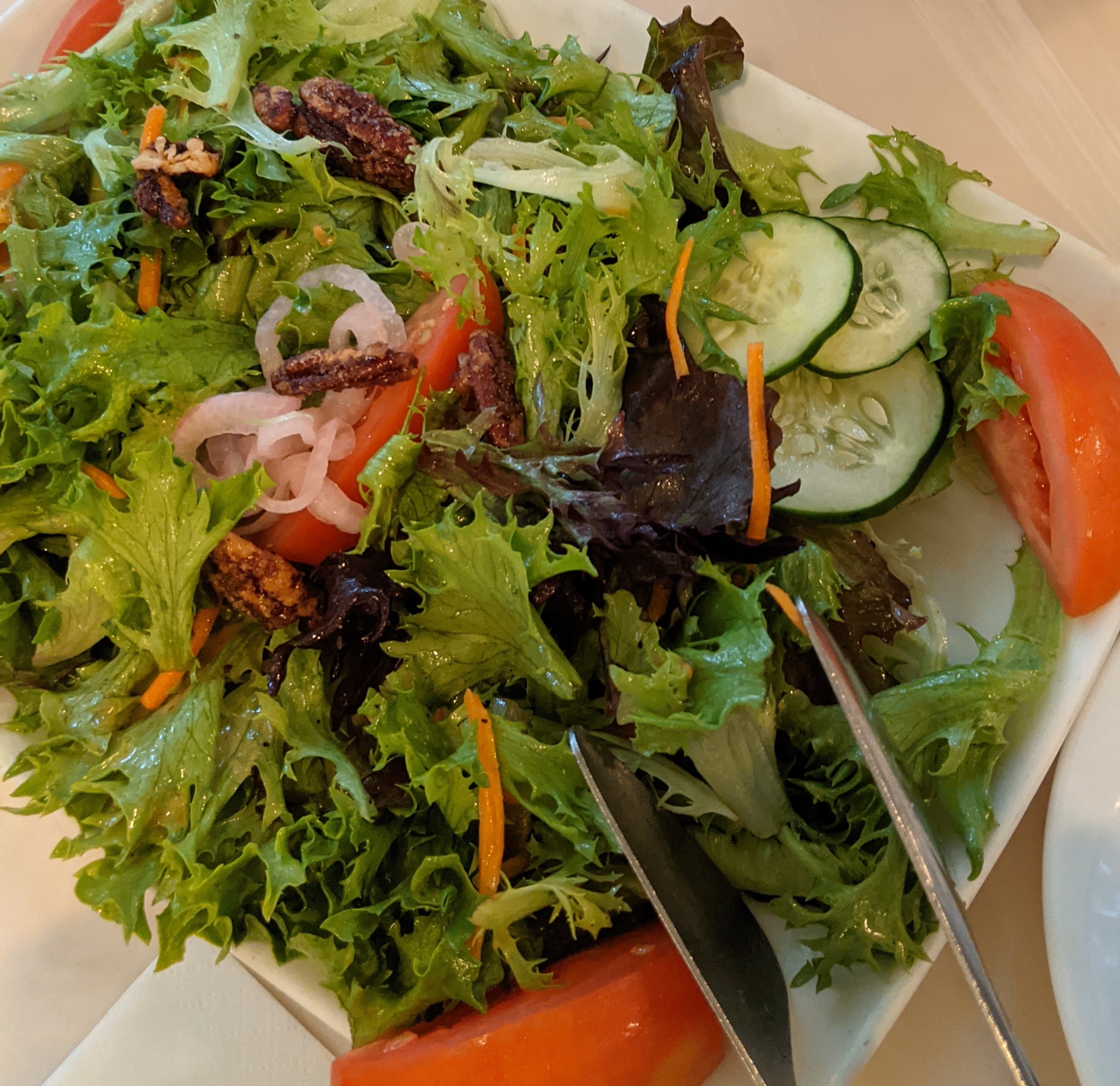 For dinner, we had a reservation at Crystal Palace. Like other previously buffet style places, they serve family style now where they bring you your food instead, but you can ask for refills. It started with a bread service and garden salad, which had awesome candied pecans. Get more just for that. LoL! Then, for the main entree, we all got the prime rib. It was delicious!! And for dessert, they bring a platter of five different little cakes. We felt that the food here is better than when it was a buffet. You don’t get as much variety, which is the fun of a buffet, but the quality is better. The characters aren’t back yet, but hopefully, soon.