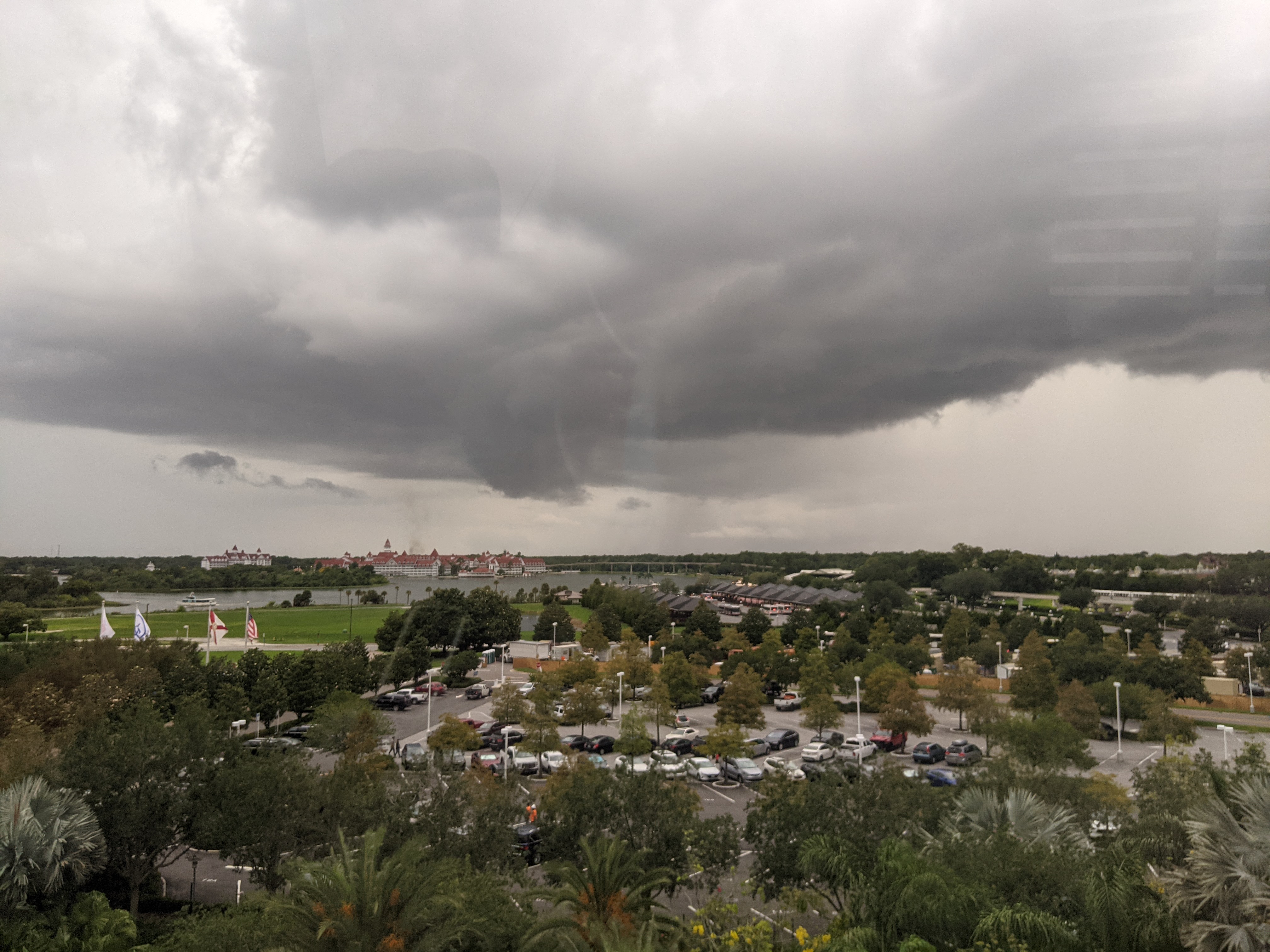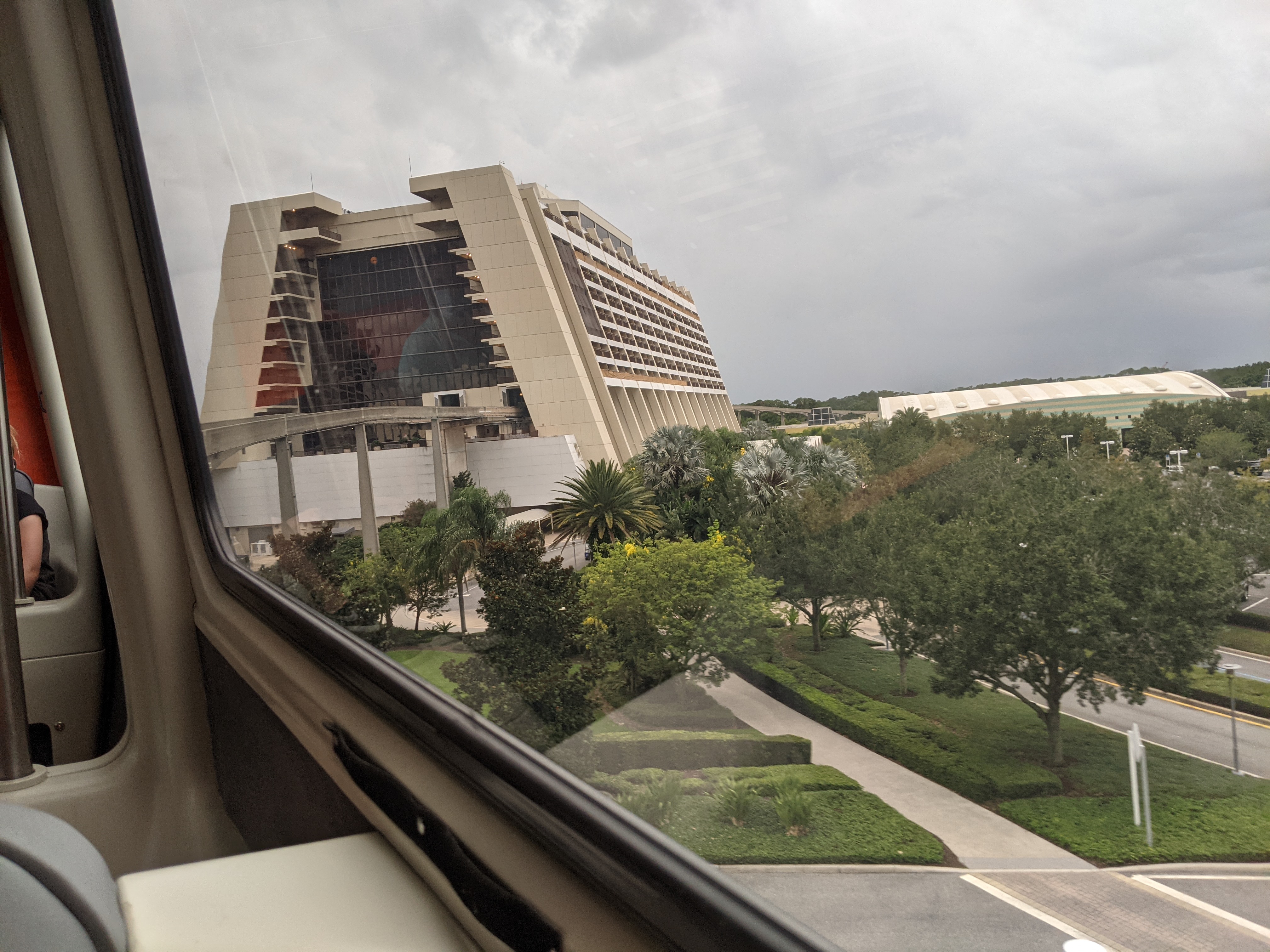 Look at the sky! It may not even come across as severe in the pics, but huge ominous clouds we’re starting to roll in. I think we’ve done enough at this park today anyway. It was time to find someplace where we can chill a bit during today’s hurricane. We decided to take the monorail over to the Contemporary resort right next door to do some more resort exploration.