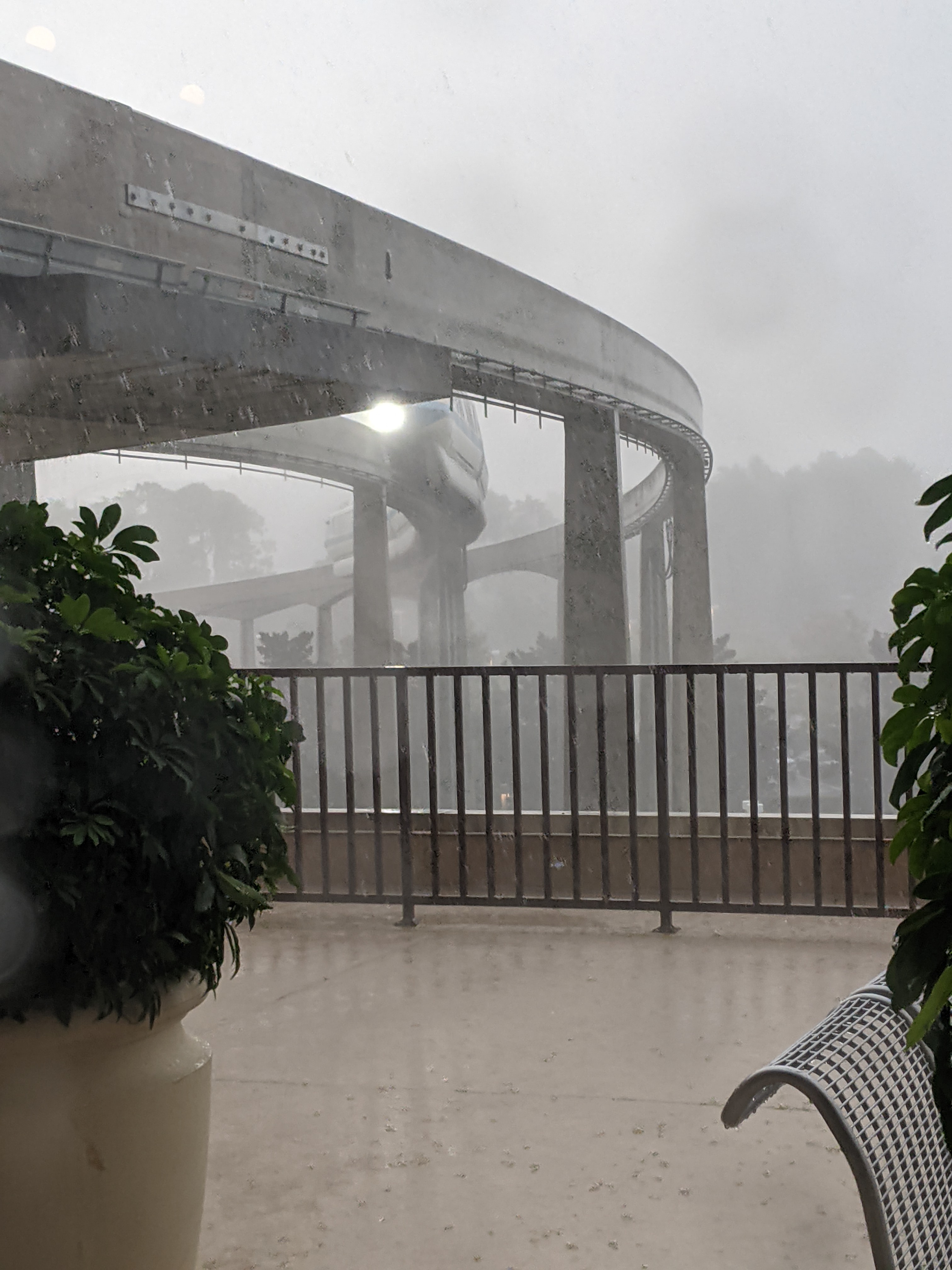 Good thing we left when we did! As soon as we got to the Contemporary, it started a torrential downpour! Holy cow!