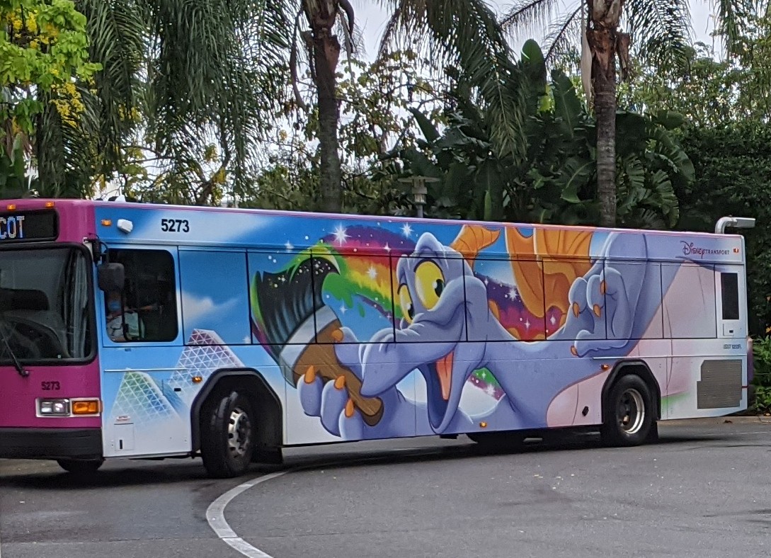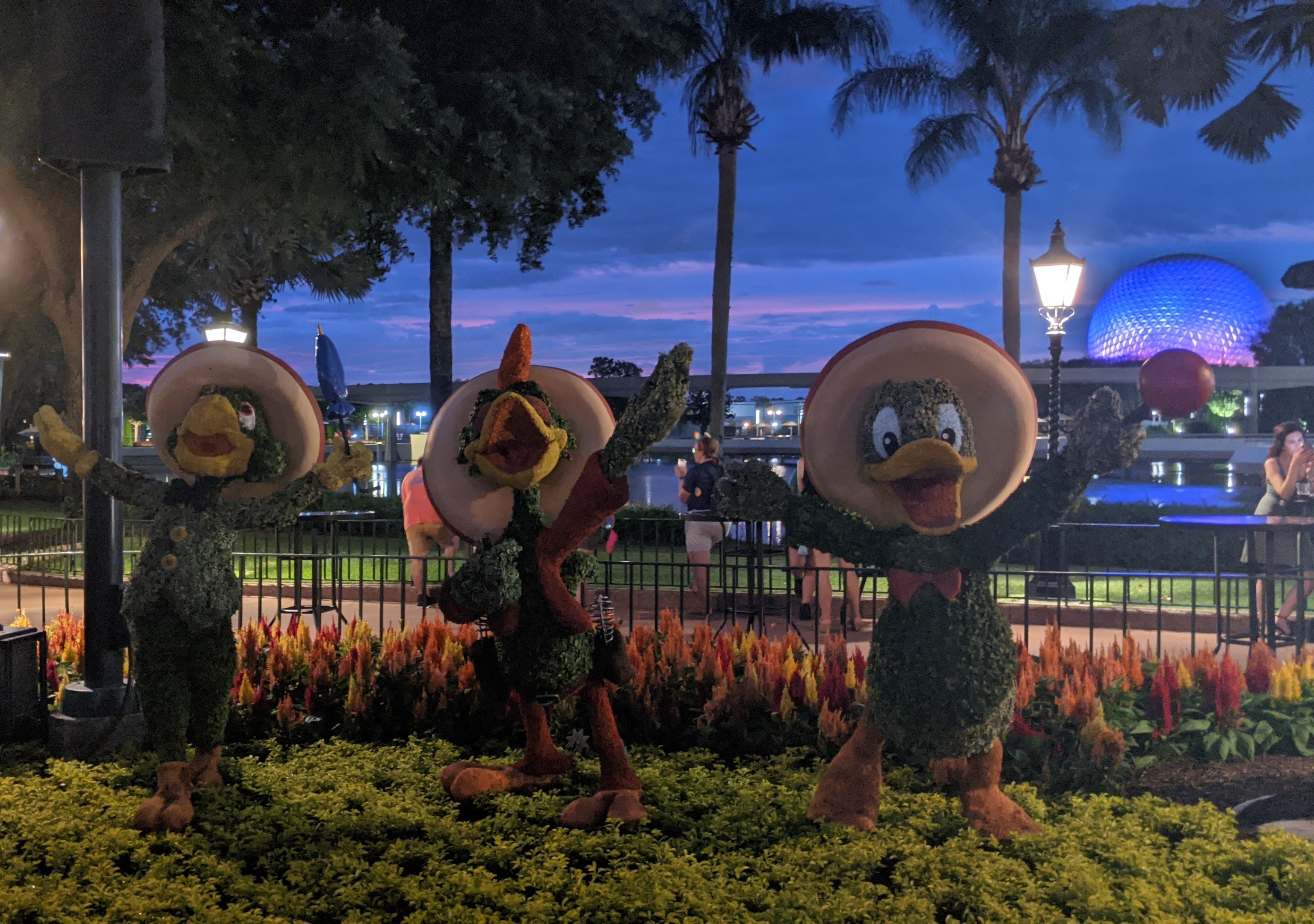 While we were waiting out the storm, we decided to change our remaining plans. We were originally slated to go to Disney Springs again, but we decided to go back to EPCOT instead for the rest of the evening. We wanted to try more of the Flower & Garden Festival kiosks instead of having dinner at a sit-down restaurant today. We love the festivals and snacking “around the world”. So, once the rain let up, we went to catch the bus in front of the resort to EPCOT.