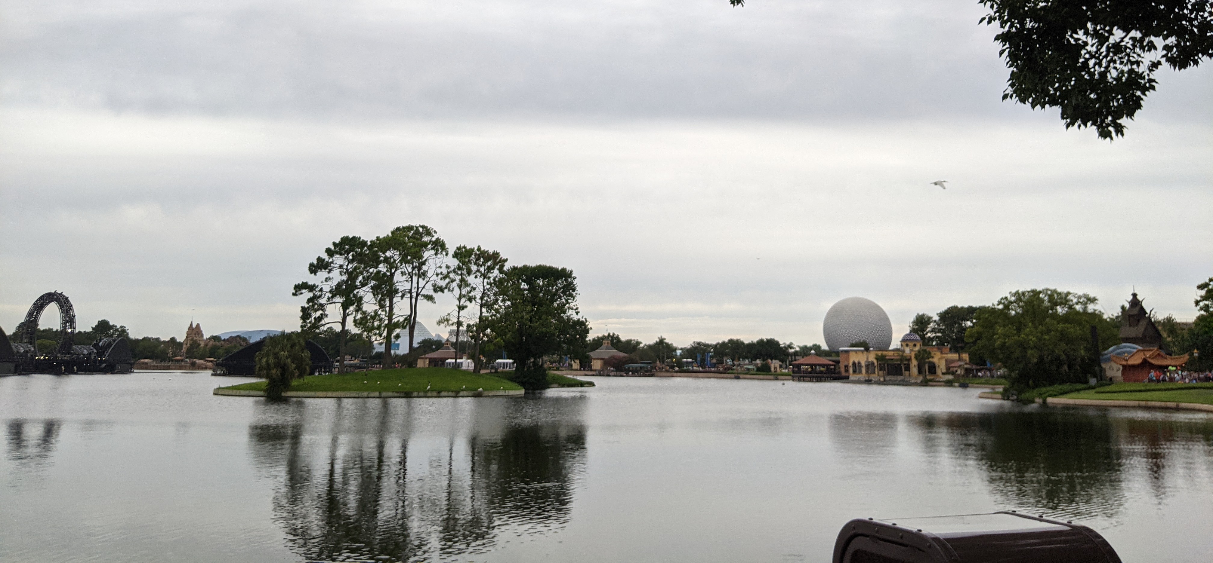 It looks like the rains scared away the crowds because everything had low waits except Test Track. That was probably because it just reopened after the rain and a crowd was accumulating there the whole time. So, we went to do Soarin’ instead. We love that one! Afterwards, we rode Spaceship Earth and Mission Space before heading back to the countries.