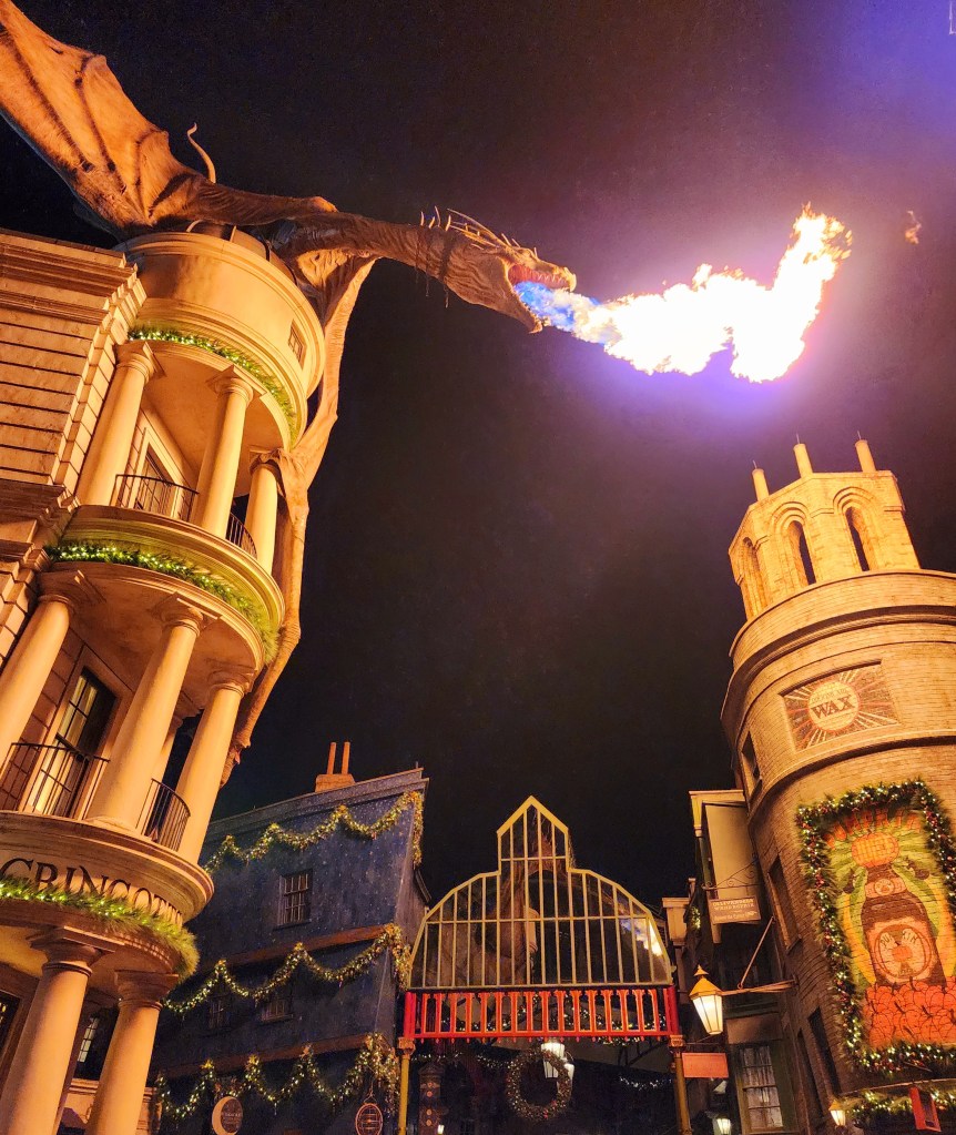 We also caught some of the Mannheim Steamroller concert that was happening right in the park! Their songs always ring in the Christmas season. We saw them here during our very first trip to Universal in 2010 also, so this brings back fond memories.