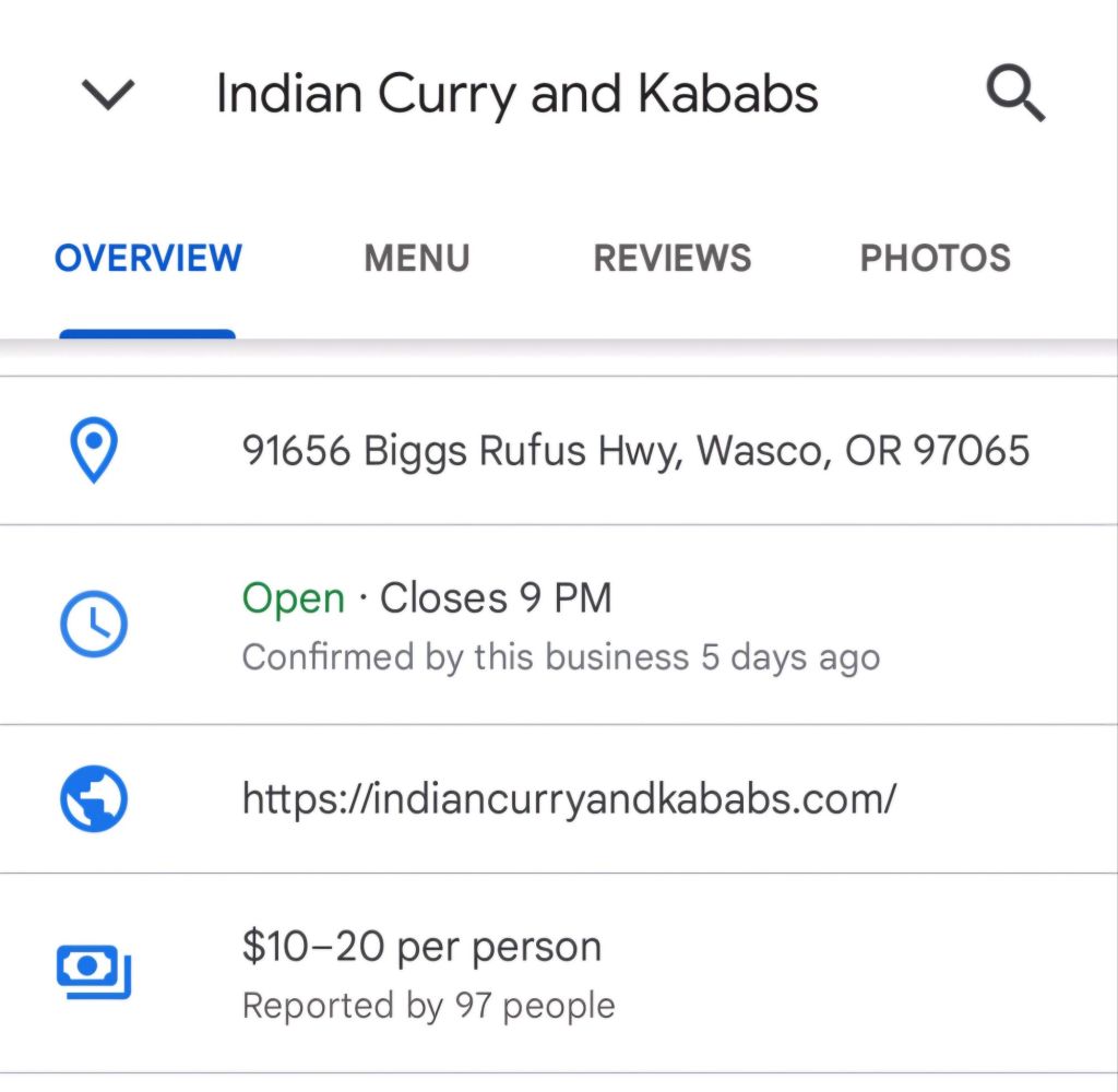 While driving along the Columbia River Gorge east out of Oregon, we stumbled upon this Indian food truck right off the exit in a small lot. Honestly, if I happened to just drive by without reading about it first and specifically looking for it, we probably would’ve skipped it or not even noticed it. But, while searching Google Maps in the area for dinner, I found this Indian place with really high ratings and great reviews about how delicious and authentic the food was, so we were sold.