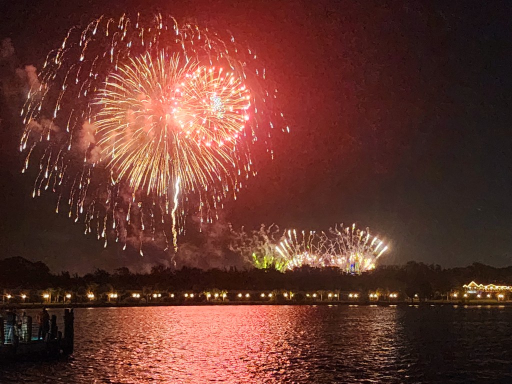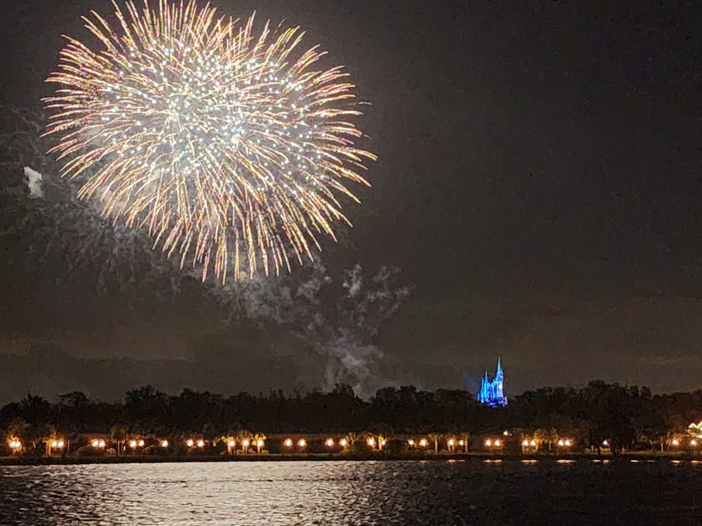 However, the coolest thing about the night was that they have a deck out back where you can go watch the Magic Kingdom fireworks across the lagoon! They pipe in the music and you get a clear view! Unfortunately, you do miss most of the projections on the castle and along Main Street, so I still recommend seeing the show inside the park if you’ve never seen it before, but if you have, this is an awesome different perspective on it. What a way to cap off a great day of new experiences!