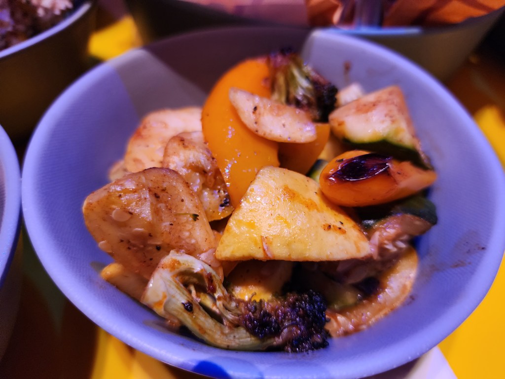 First stop, a visit to EPCOT for dinner! The Flower & Garden Festival, which usually runs from March or April til about early July, was going on so we went straight there to try out a few food items from the festival booths. Yum! We usually share one item from each booth so we can try a bunch of different things.