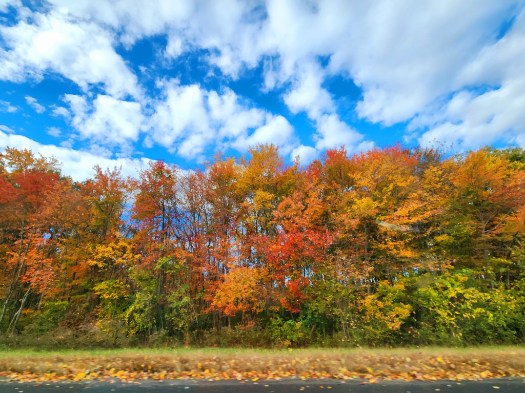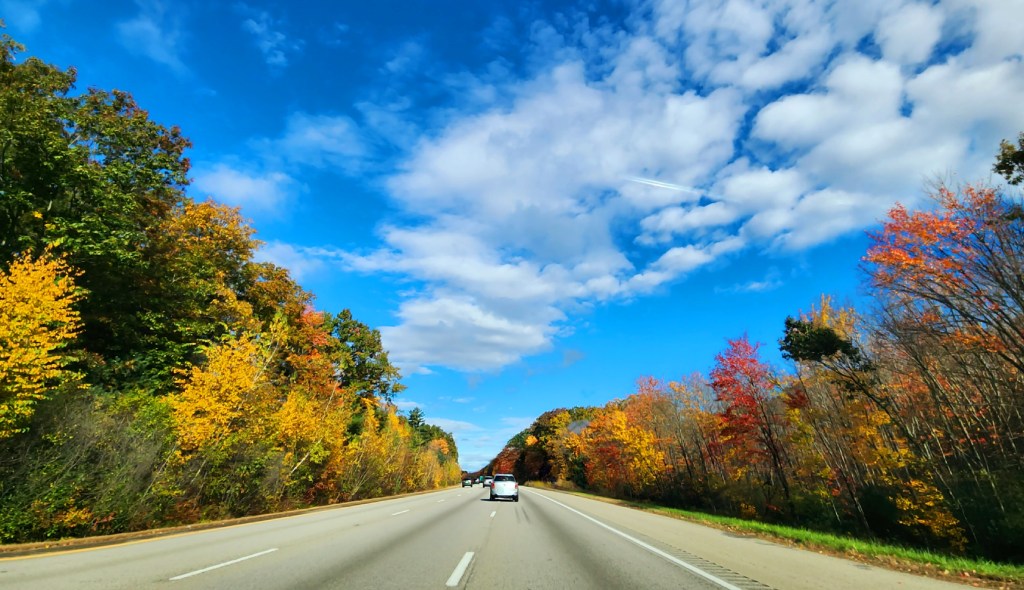 It was a fun stop in Boston, but now, we hit the road again to start heading west! We see more colorful trees along the way.